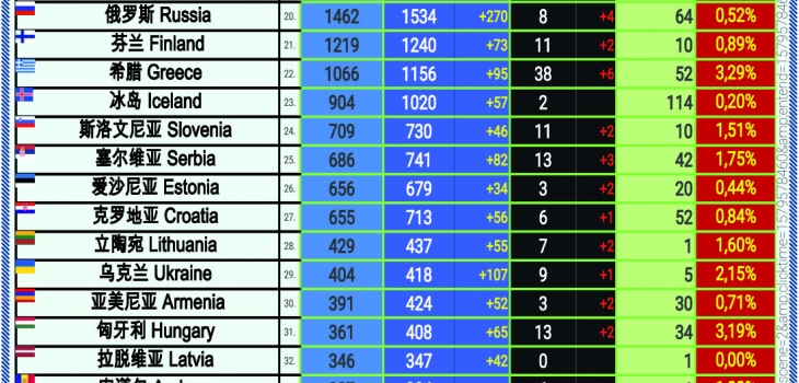 Uncategorised 29.03.2020: COVID-19 新型冠状病毒欧洲疫情表。 比利时病毒加速扩散,已超越奥地利,现在排行第八。 意大利与西班牙24小时内新增死亡人数各七百多例。 29th March 2020 by Huaxin Admin
