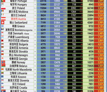今日新增确诊人数超越六百例 (维也纳占一半以上)。与昨天相比数字略有增加。内政 和 卫生部周二报道,在过去的24小时内,整个奥地利登记的新型冠状病毒感染数量为 609。本周二的现存患者人数保持在八千病例以上。目前在医院接受治疗的感染者增加至 491 (+22) 名,重症监护患者的人数增加至 90 (+2)。迄今总共进行了 1 586 578 次PCR测试,自从星期一以来增加了16 586 次测试。