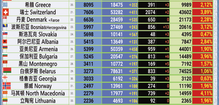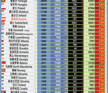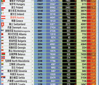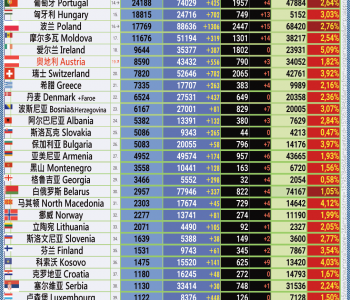 24小时内具体有662 例新感染 (维也纳:279, 下奥地利州:109, 施蒂里亚州:76, 上奥地利州:74, 蒂罗尔州:51, 萨尔茨堡州:27,福拉尔贝格州:19, 布尔根兰州:18, 克恩顿州:18).
