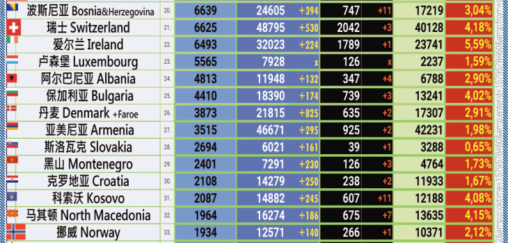 24小时内具体有 780 例新感染 ( 维也纳:366, 上奥地利州:124, 下奥地利州:100, 蒂罗尔州:65, 福拉尔贝格州:51, 萨尔茨堡州:27, 施蒂里亚州:21, 布尔根兰州:14, 克恩顿州:12).