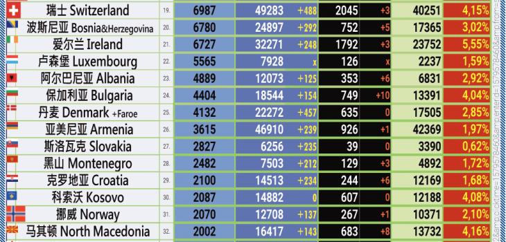 24小时内具体有808 例新感染 ( 维也纳:341, 下奥地利州:159, 施蒂里亚州:85, 蒂罗尔州:75, 上奥地利州:71, 福拉尔贝格州:28, 布尔根兰州:18, 萨尔茨堡州:23, 克恩顿州:8).