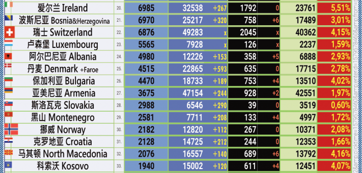 24小时内具体有813 例新感染 ( 维也纳:432, 上奥地利州:108, 蒂罗尔州:80, 下奥地利州:70, 施蒂里亚州:58, 福拉尔贝格州:32, 萨尔茨堡州:18, 布尔根兰州:10,克恩顿州:5).
