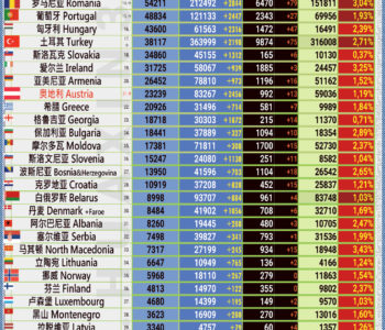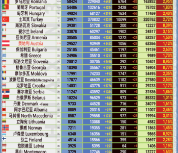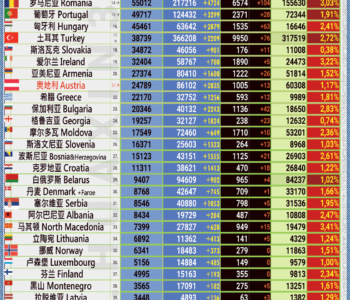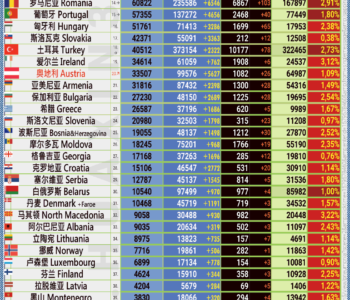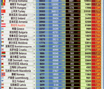 截至周五,奥地利登记了 99 576 例确诊病例,现已有 64 987 人康复。奥地利目前有 33 507 名患者仍患病。到目前为止,已经对 2 203 993 人进行了检测,在过去的24小时内进行了 26 421例检测,其中 21.3%为阳性。