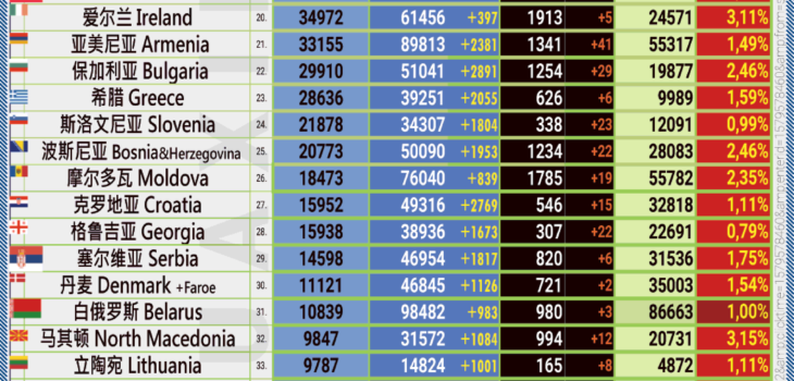 到目前为止,奥地利已有 93 949 例阳性检测结果,而 63 366 人已经康复。