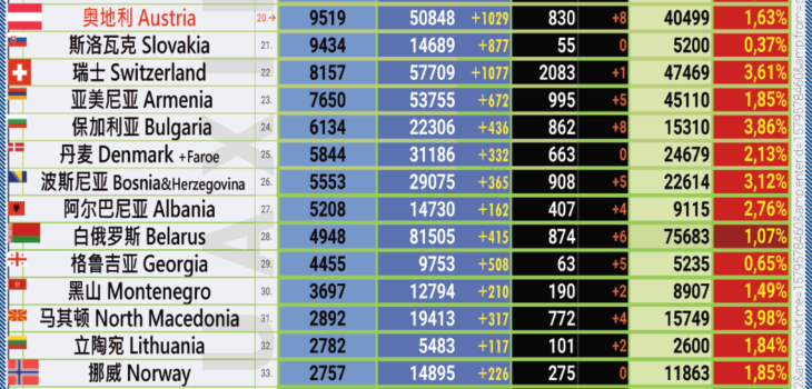 奥地利目前有 9 519 人仍感染了 Covid-19, 这也是迄今为止的记录最新高。自大流行开始以来,共有 50 848 人感染了Covid-19。