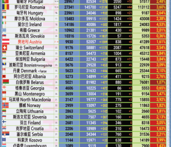 星期六在24小时之内有 1 235 例确诊的新的新冠感染,奥地利再次破了旧纪录。根据卫生和内政部的报告,现存患者人数从周五的 10 307 例上升至 10 742 例。到目前为止,奥地利已有 54 423 项阳性测试结果。 42 829 人已从感染中恢复。