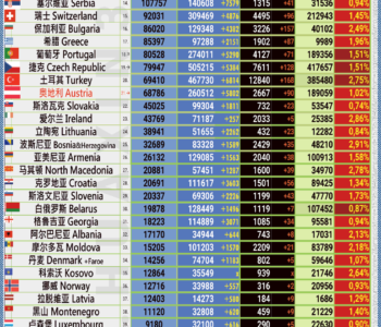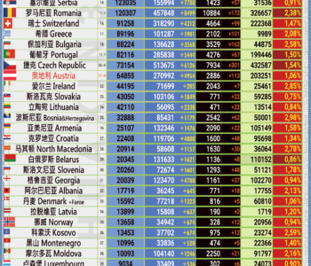 24小时内具体有 5802 例新感染 (上奥地利州:1385,维也纳州:886, 施蒂里亚州:828, 下奥地利州:727, 蒂罗尔州:629, 克恩顿州:612, 萨尔茨堡州:426, 福拉尔贝格州:195, 布尔根兰州:114).