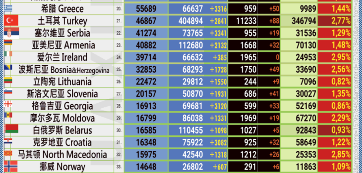 奥地利的新感染人数已达到最高水平。最多的新感染发生在上奥地利州。其次是维也纳州与施蒂里亚州。11月12日,星期四,过去24小时内整个奥地利报告了 9262 例新的新冠感染。 这是自大流行在奥地利爆发以来新感染人数最多的一天。 原因之一可能是在今天的数字里还包括前几天的延迟报告的数据。到目前为止,奥地利共有 181 642 项阳性检测结果与 107 876 人已康复。