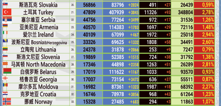 超过 3 900 名 COVID-19 名患者必须在医院接受治疗,其中包括 567 名重症监护病房。 共有 76 839 人仍在患病。直到本周中旬,整个奥地利的重症监护病房的使用率继续上升。根据新冠红绿灯委员会的数据,福拉尔贝格州,上奥地利州与蒂罗尔州的情况极为严重。