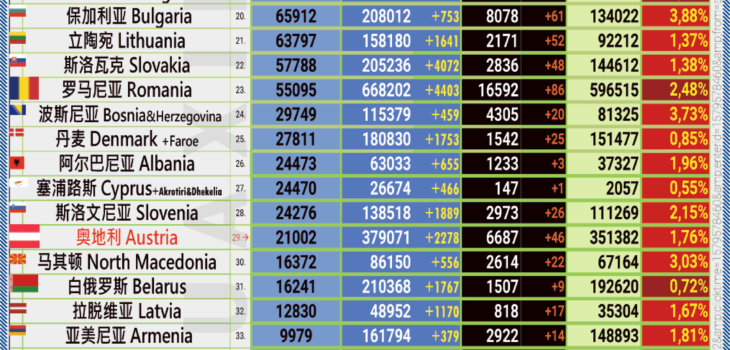 自大流行开始以来,到目前为止,奥地利已登记了 379 071 例病例。在24小时之内,当前新冠现存患者的人数略增至 21 002 名。