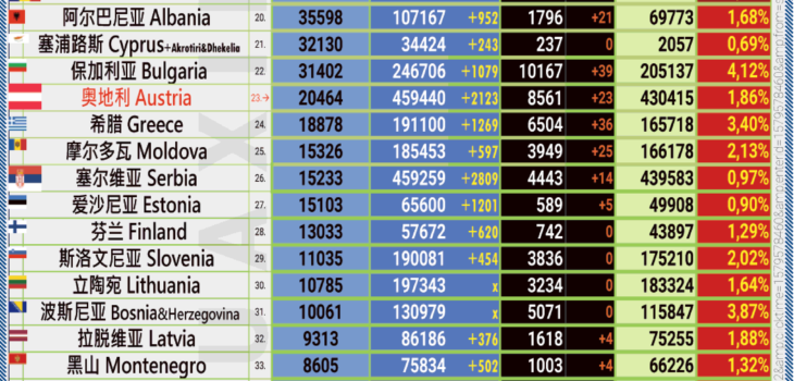 28.02.2021: COVID-19 新型冠状欧洲疫情表。