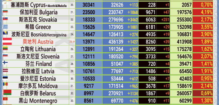 16.02.2021: COVID-19 新型冠状欧洲疫情表。