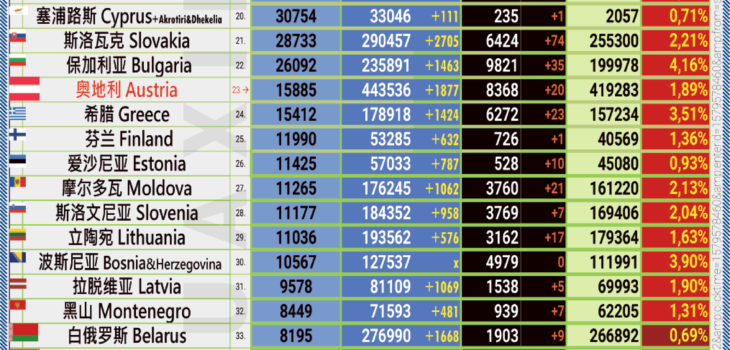 20.02.2021: COVID-19 新型冠状欧洲疫情表。