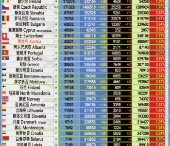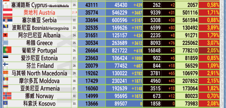 31.03.2021: COVID-19 新型冠状欧洲疫情表。