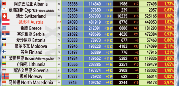 10.03.2021: COVID-19 新型冠状欧洲疫情表。
