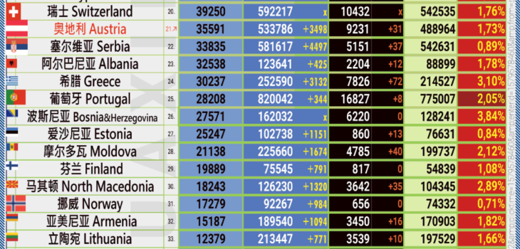 27.03.2021: COVID-19 新型冠状欧洲疫情表。