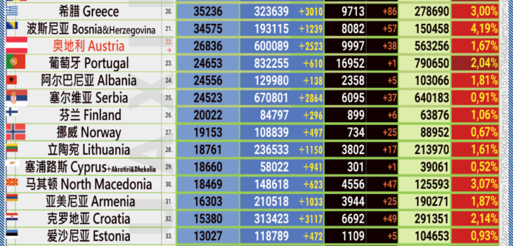 21.04.2021: COVID-19 新型冠状欧洲疫情表。