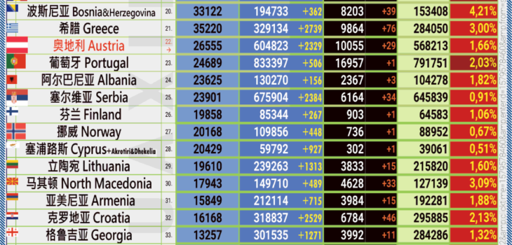 23.04.2021: COVID-19 新型冠状欧洲疫情表。