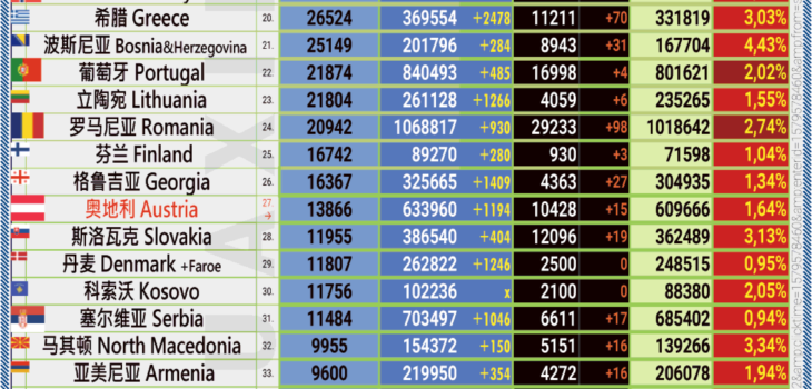 12.05.2021: COVID-19 新型冠状欧洲疫情表。