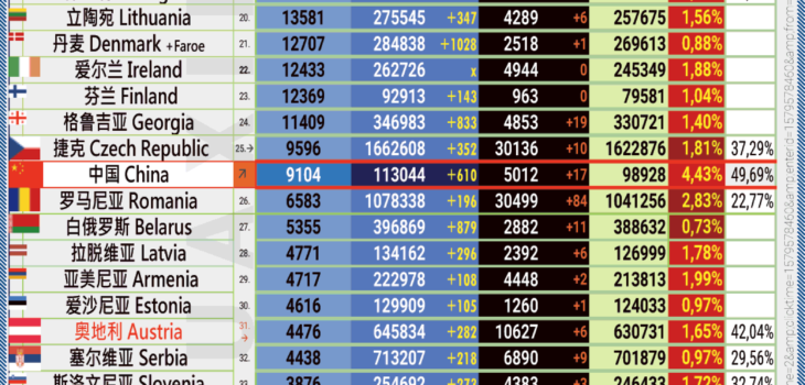 03.06.2021: COVID-19 新型冠状欧洲疫情表。