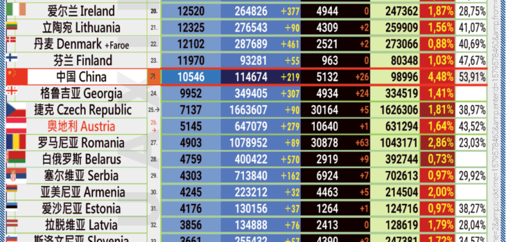 07.06.2021: COVID-19 新型冠状欧洲疫情表。