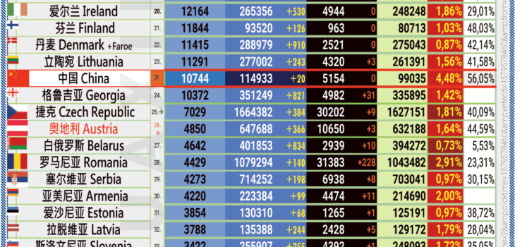09.06.2021: COVID-19 新型冠状欧洲疫情表。