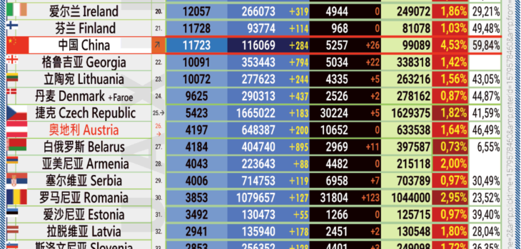 12.06.2021: COVID-19 新型冠状欧洲疫情表。