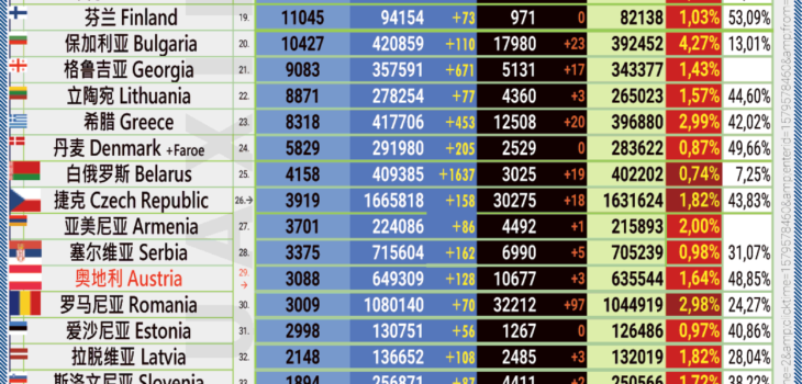 18.06.2021: COVID-19 新型冠状欧洲疫情表。
