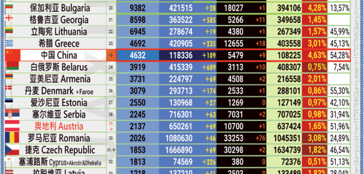27.06.2021: COVID-19 新型冠状欧洲疫情表。