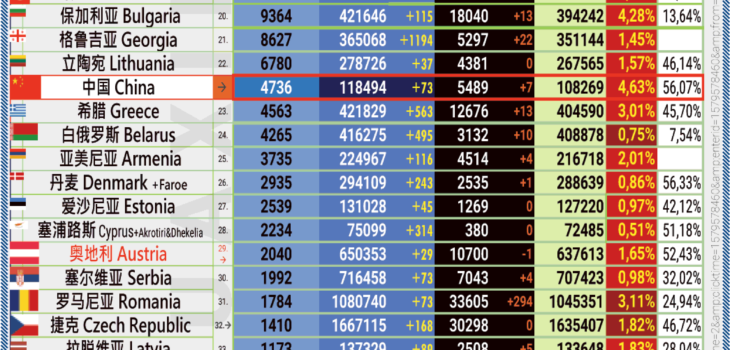 29.06.2021: COVID-19 新型冠状欧洲疫情表。