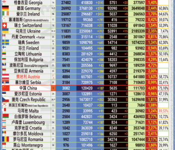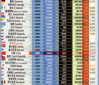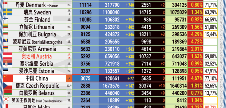 31.07.2021: COVID-19 新型冠状欧洲疫情表。