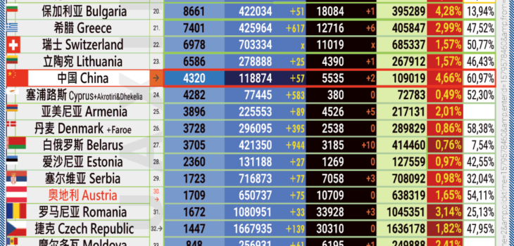 04.07.2021: COVID-19 新型冠状欧洲疫情表。