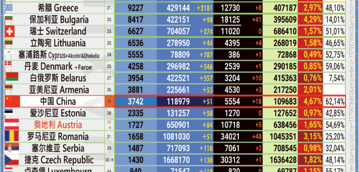 06.07.2021: COVID-19 新型冠状欧洲疫情表。