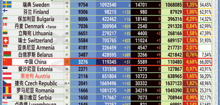 12.07.2021: COVID-19 新型冠状欧洲疫情表。