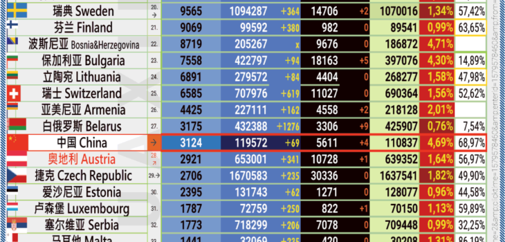 16.07.2021: COVID-19 新型冠状欧洲疫情表。