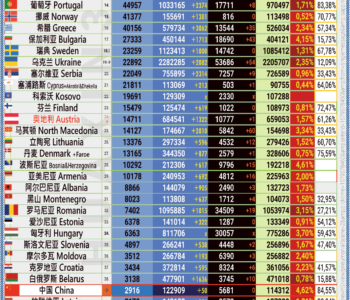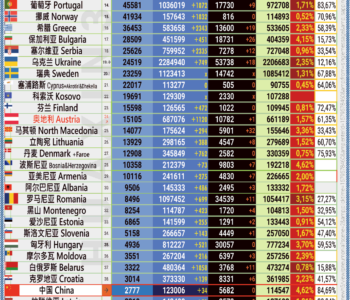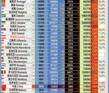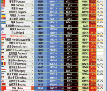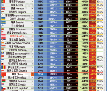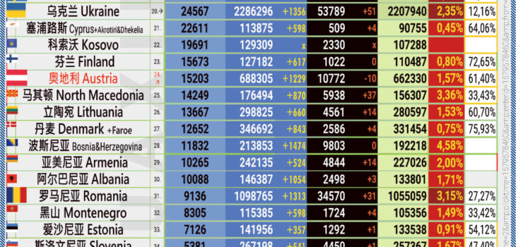 31.08.2021: COVID-19 新型冠状欧洲疫情表。