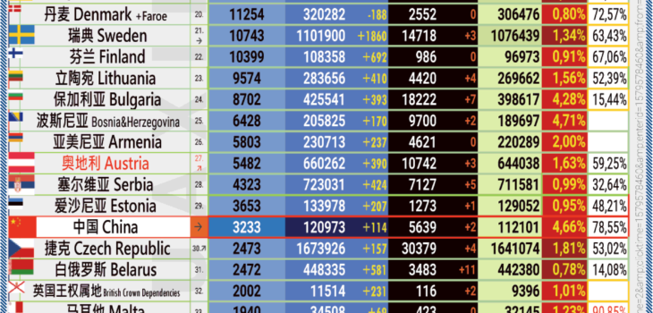 03.08.2021: COVID-19 新型冠状欧洲疫情表。
