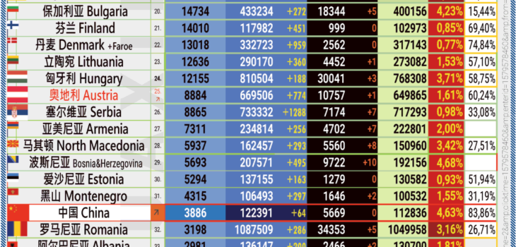 16.08.2021: COVID-19 新型冠状欧洲疫情表。