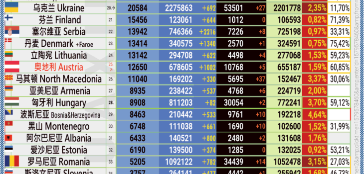24.08.2021: COVID-19 新型冠状欧洲疫情表。
