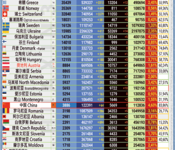 20.08.2021: COVID-19 新型冠状欧洲疫情表。