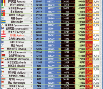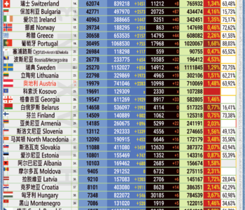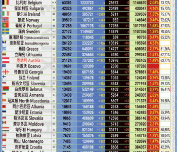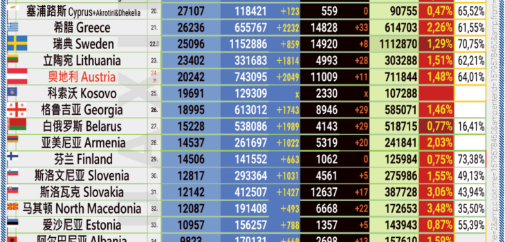 30.09.2021: COVID-19 新型冠状欧洲疫情表。