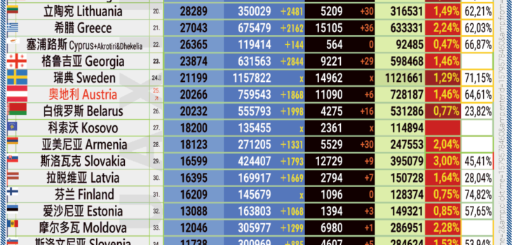 09.10.2021: COVID-19 新型冠状欧洲疫情表。
