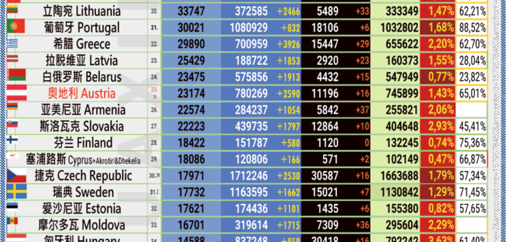 19.10.2021: COVID-19 新型冠状欧洲疫情表。