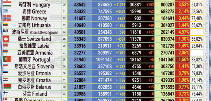 01.11.2021: COVID-19 新型冠状欧洲疫情表。