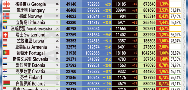 03.11.2021: COVID-19 新型冠状欧洲疫情表。