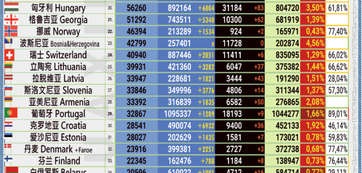 05.11.2021: COVID-19 新型冠状欧洲疫情表。