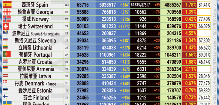 10.11.2021: COVID-19 新型冠状欧洲疫情表。