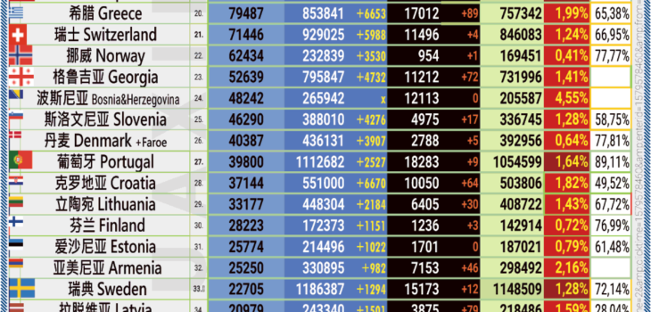 17.11.2021: COVID-19 新型冠状欧洲疫情表。