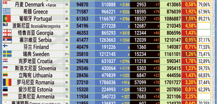 05.12.2021: COVID-19 新型冠状欧洲疫情表。