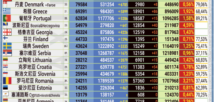 08.12.2021: COVID-19 新型冠状欧洲疫情表。